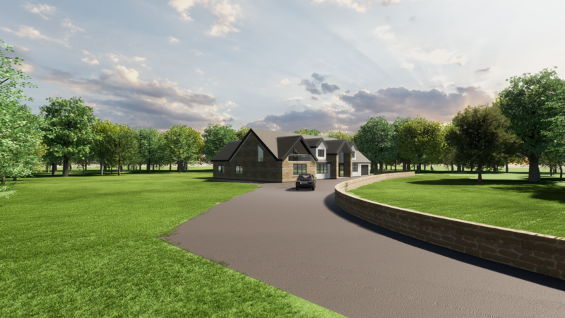 Our clients purchased a bungalow on this incredible site. We provided all the plans, gained planning and provided building regulation drawings on this to make it a much bigger two storey dwelling. Using 3D Visuals our clients could select the materials they wanted and it also helped gain planning permission.
